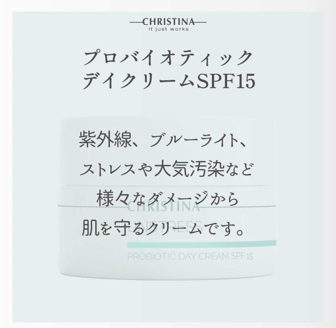 クリスティーナ独自の開発により朝から夕方まで紫外線をカット。